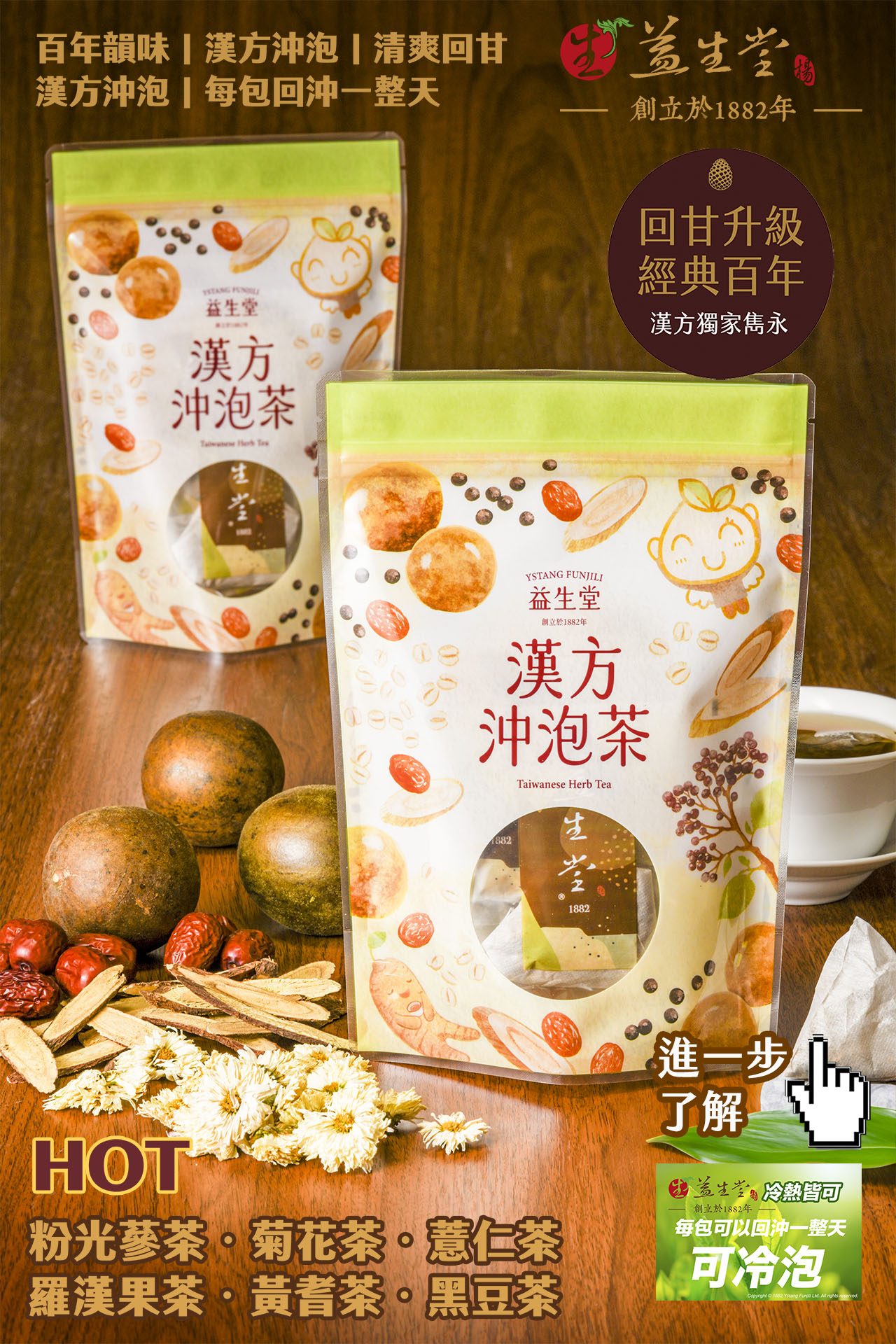 【2025 熱門沖泡】益生堂。凡吉力漢方沖泡茶~溫暖粉光蔘茶、活力黃耆茶、羅漢果茶、薏仁茶、黑豆茶、菊花茶,益生堂茶包溫熱泡冷泡皆可!!!【每一包回沖一整天 · 可冷泡】