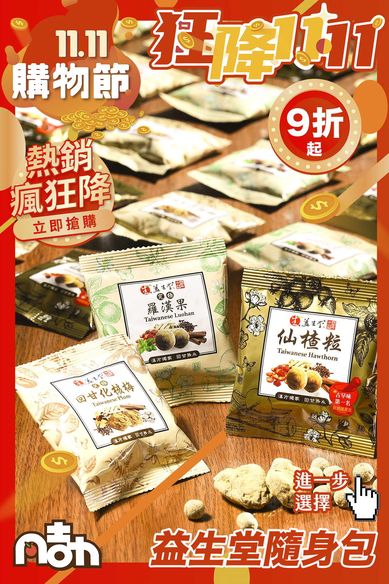 ⭐️【2025.1111購物節】❤️🔥 益生堂。凡吉力隨身包 ( 隨身100入50入 ) HOT!仙楂粒、化核梅、八仙果、羅漢果隨身包【限時優惠回饋只到 ~ 2025/11/11】【臺灣常溫滿 990 宅配免運費 · 超商取貨滿 890元免運費】(除星期日與外島之外) 🌲 歡迎官網線上訂購 📞 來電訂購 06 - 2209336 ☎️ 傳真訂購 06 - 2246658 或 ✉️ Ystangfunjili@gmail.com ❤️❤️❤️
