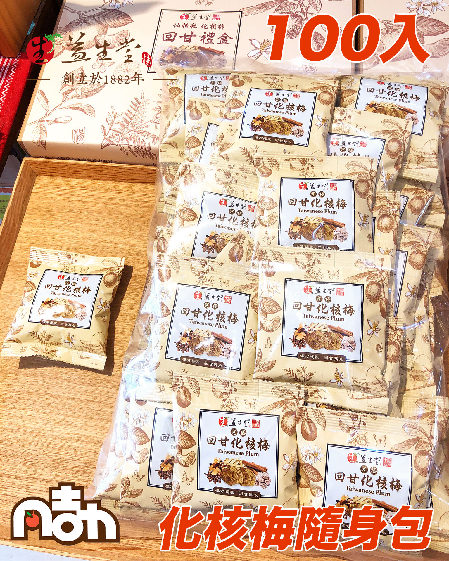 【2025 熱門破百包】化核梅隨身包 ( 隨身100入小包裝 )【含高級陳皮,濃度加2倍】HOT!最新經典回甘,益生堂熱門化核梅隨身 x100小包,店面熱門破百包,分享隨身攜帶給大家~!!!