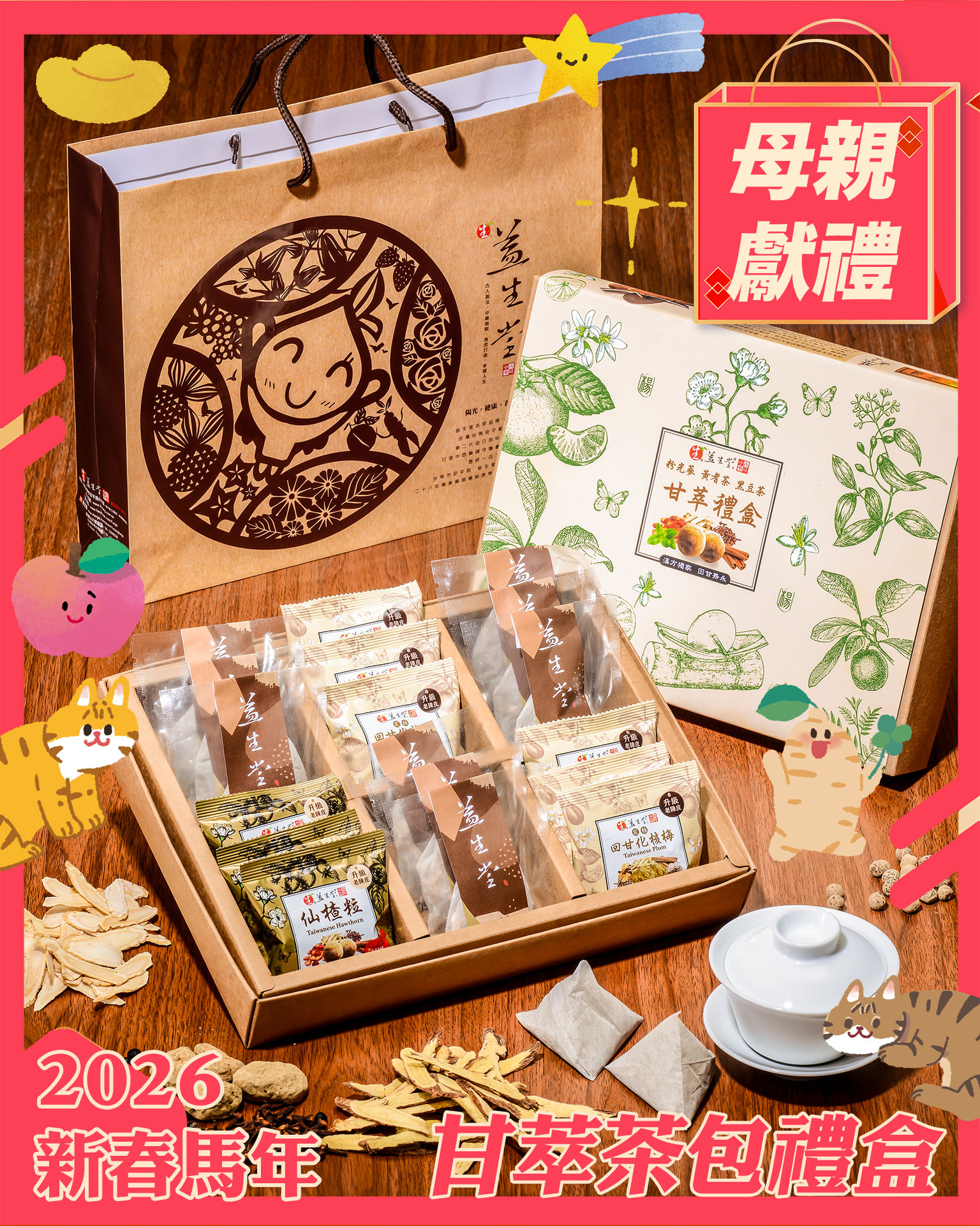 【益生堂。凡吉力】益生堂甘萃茶包禮盒 (隨身18小包裝)~ 2026HOT破千盒!經典回甘雋永,粉光蔘黃耆茶黑豆茶 & 熱門仙楂粒隨身各x3小包、究極回甘化核梅隨身x6小包,送禮心意【含禮袋款】