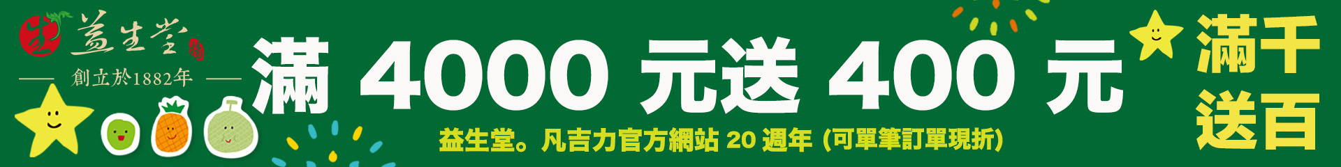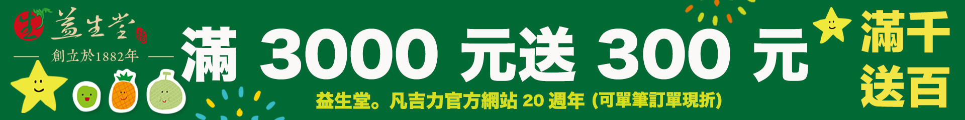 🎉🎉🎉【2026 歡慶官網20年】【A】滿 1000元送100元限時優惠【B】滿 2000元送 200元限時優惠【B】滿 3000元送 300元限時優惠【C】滿 4000元送 400元限時優惠【D】滿 5000元送 500元限時優惠【臺灣常溫宅配滿 990 免運費 · 超商取貨滿 890元免運費】(除星期日與外島之外) 🎉 歡迎官網線上訂購 ☎️ 來電訂購 06 - 2209336 傳真訂購 06 - 2246658 或 Ystangfunjili@gmail.com 🎉🎉❤️❤️❤️