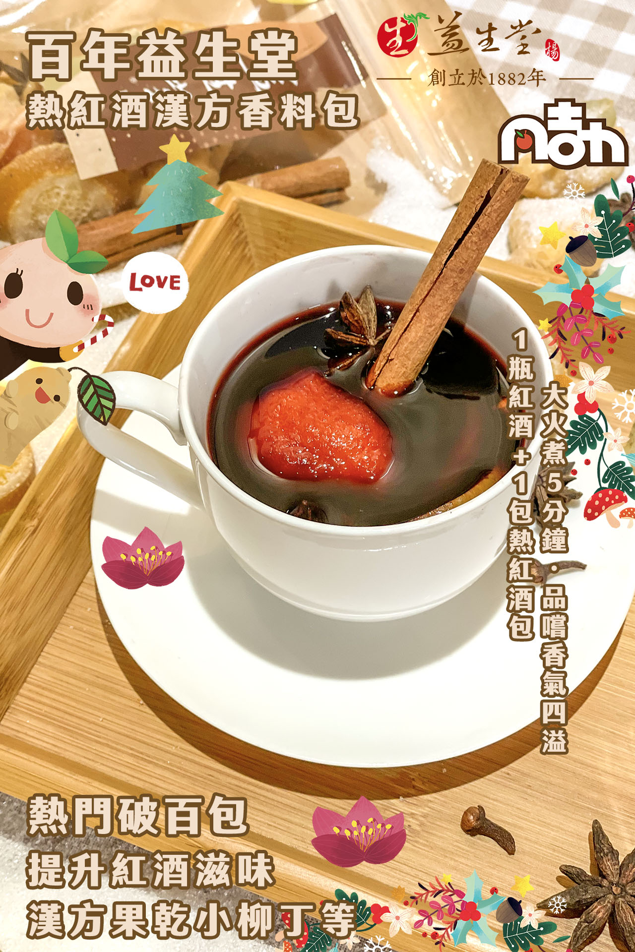 【聖誕優惠3包組】益生堂熱紅酒香料包【含漢方香料包 + 漢方果乾小柳丁等】(原價699元) 549元/ 3包組 (單包優惠183元 | 省下超多48元)