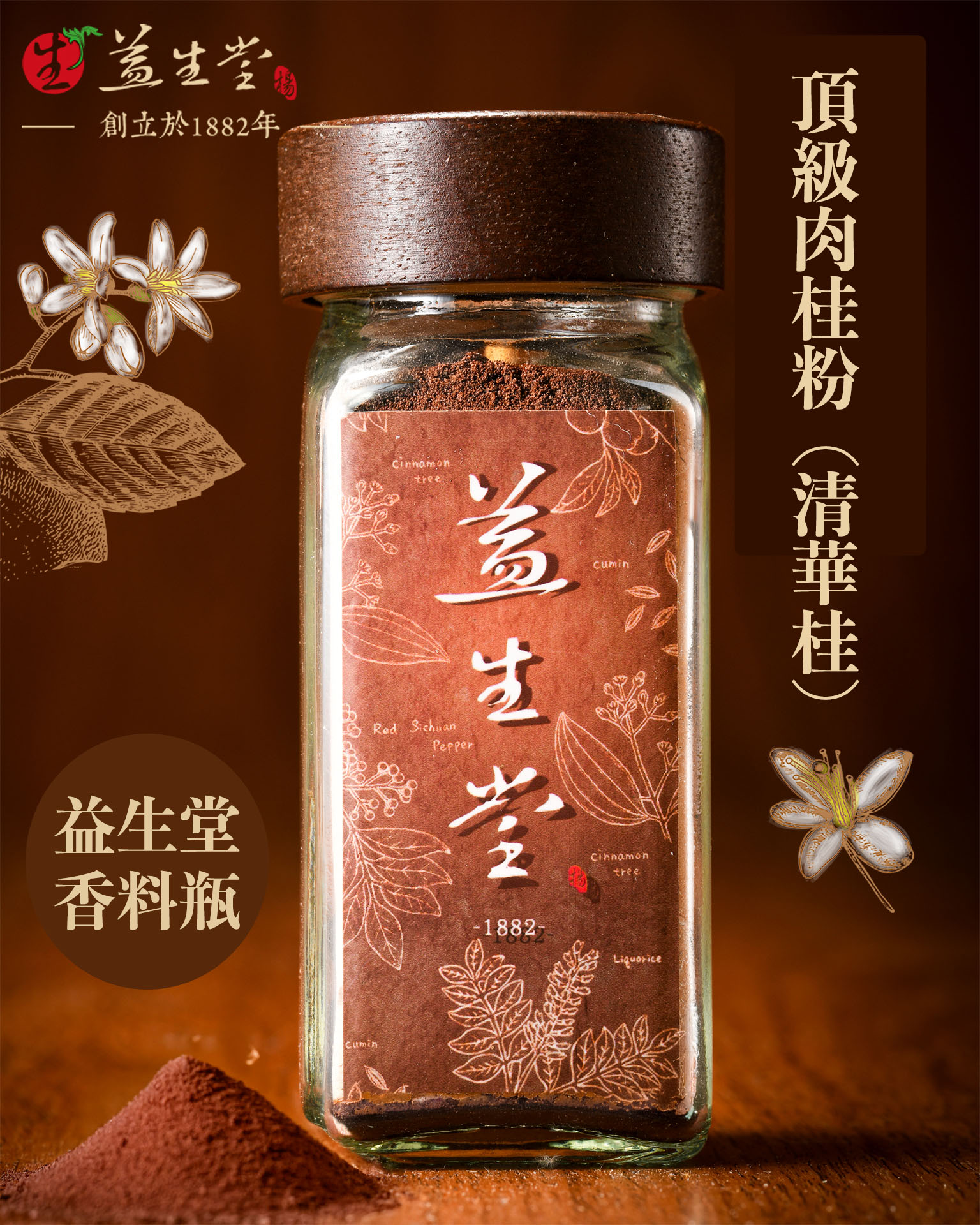 ☉商品:【益生堂百年】益生堂頂級肉桂粉 (清華桂粉)【質感玻璃瓶】。