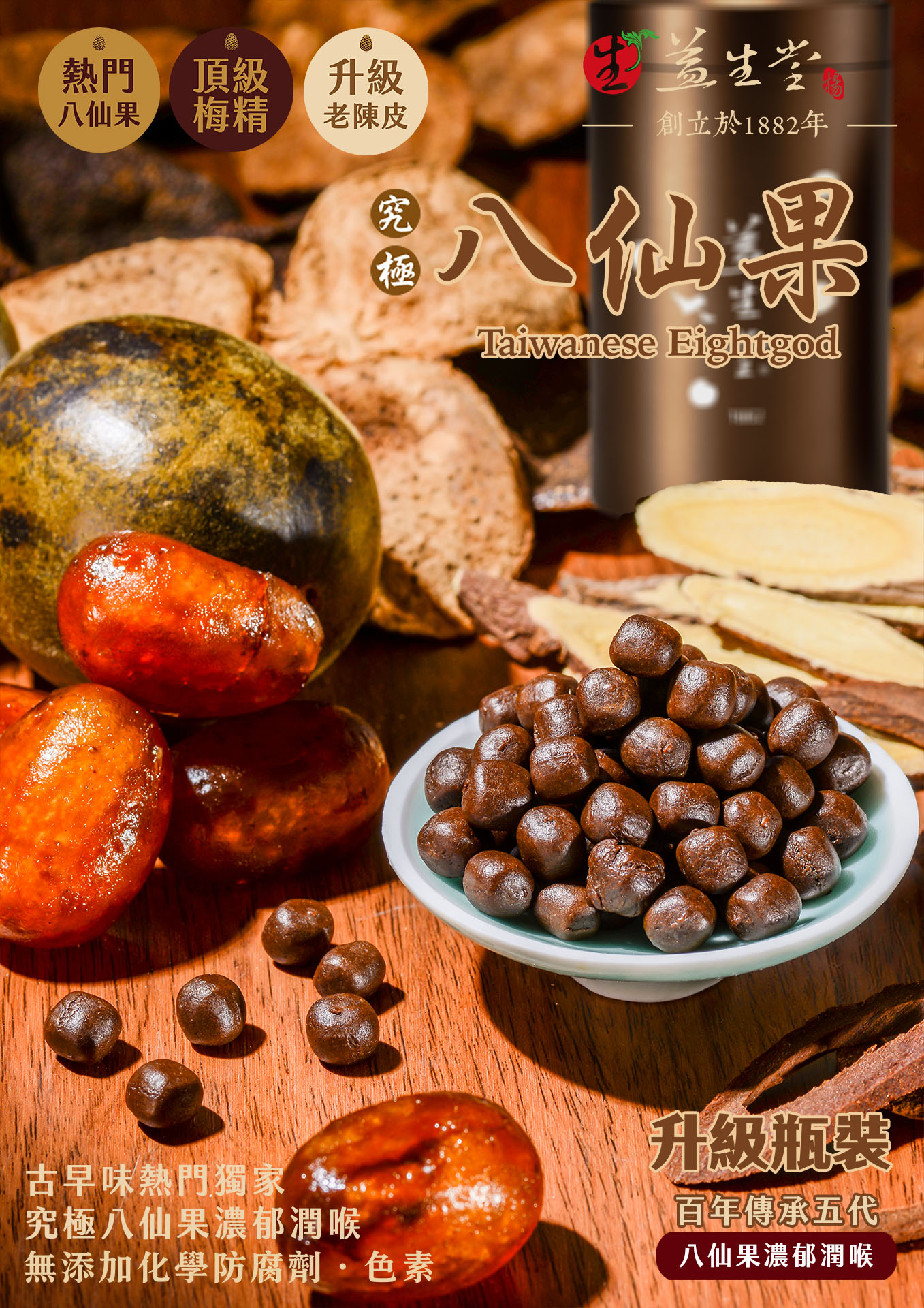百年益生堂,創立益生堂。凡吉力品牌,招牌熱門 益生堂仙楂粒 與 漢方水果蜜餞、藥膳食補系列,由第四代阿泰老闆領軍,第五代經營~古早傳統與現代的火花,漢方調配在台灣水果,三十年在安平路開店傳承第二代楊大笨中醫師漢方調配與技法經驗,是台灣台南歷史文化流傳的古早味保留至今....